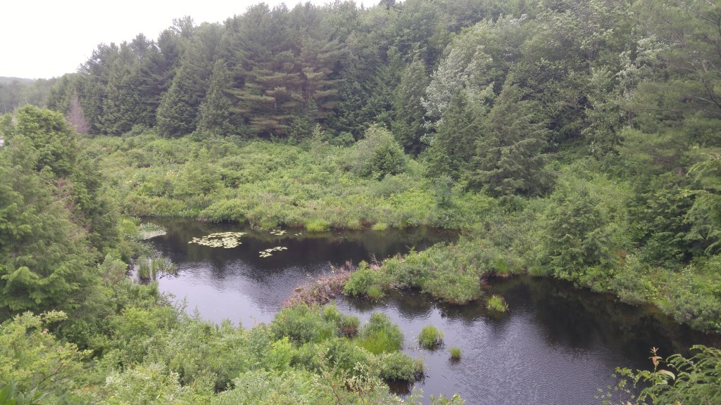 A few weeks ago, Duane and I were in the Berkshire Mountains of Massachusetts for a family wedding. It was a lovely occasion, made even lovelier by the chance to check out a local trail. The Basin Pond Trail in Lee has an interesting history. The Berkshires are the traditional home of the Mohican people, who were forced west, first to New York in the 1780s and later to Wisconsin in the 1820s. Twice efforts to dam the outlet of Basin Pond have led to disaster. In pursuit of water power to drive manufacturing, mill owners from East Lee built a dam in 1873. When the dam failed in 1886, flood waters destroyed twenty-five mills and countless homes downstream. Seven people were killed. In 1965, a second dam was built at the outlet by real estate developers for the construction of a resort community. Three years later when the second dam failed, twelve million gallons of water surged downstream and killed two people in their Cape Street homes. Today, the property is a peaceful refuge, owned and managed by the Berkshire Natural Resources Council. The 2.5 mile moderate trail crosses a network of streams and is a haven for beaver, moose, chipmunks, squirrels, and hermit thrush. For those who are into such things, the trail work is amazing. Click on the photos in the gallery below to enjoy the views.